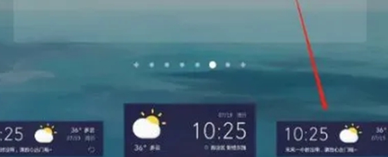 2.进入窗口小工具以后,向左滑动下方的图标,看到彩云天气以后,在其上点击一下,然后挑选一个比较喜欢的款式