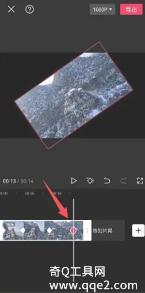 选择视频,向左移动视频至首次需要添加关键帧的地方与时间轴对齐,点击菱形的"关键帧",调整视频。